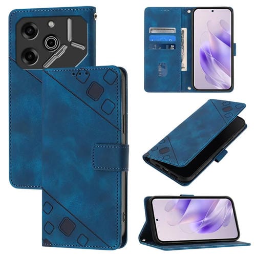 Funda de Cuero para Tecno Pova 6 5G Skin Feel en Relieve (Azul)