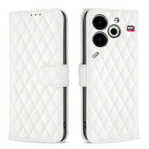 Funda de Cuero con Tapa para Tecno Pova 6 Neo Diamond Lattice (Blanco)