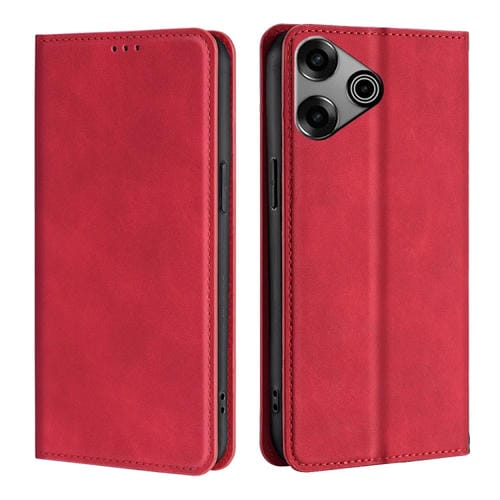 - 1x Funda de Cuero Magnética para Tecno Pova 6 Pro 5G Skin Feel (Rojo)