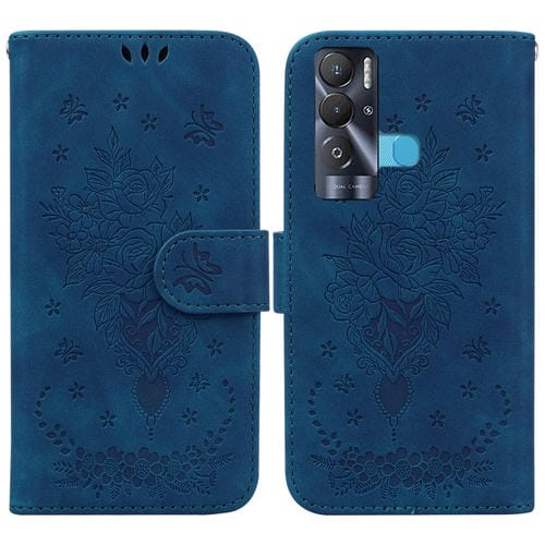 Funda para Tecno Pova Neo Butterfly Rose Foothip en Relieve de Cuero (Azul)