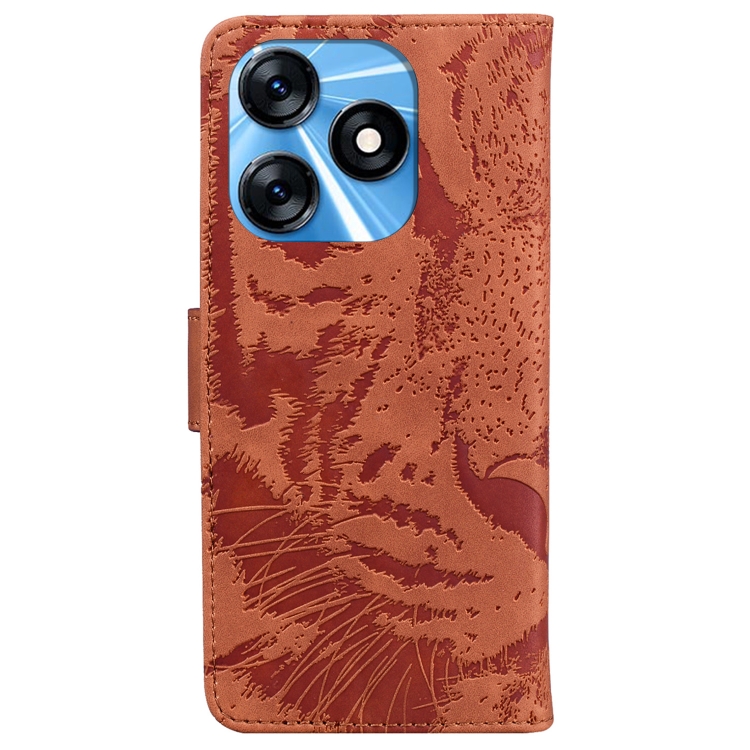 Funda de Cuero Flip para Tecno Spark 10 y Spark 10C con Patrón Tiger Embossing (Marrón)