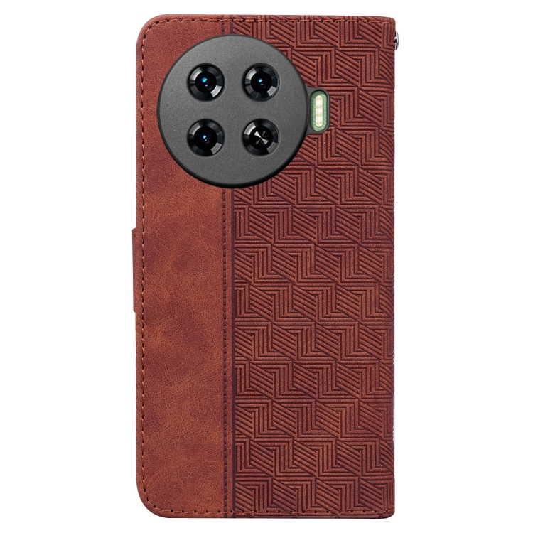 Funda de Cuero para Tecno Spark 20 Pro+ 4G con Relieve Geométrico (Marrón)