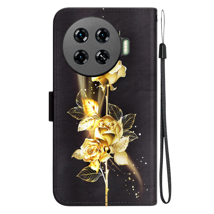 Funda de Cuero para Tecno Spark 20 Pro + 4G con Dibujo Coloreado y Textura de Cristal (Mariposa Dorada Rosa)