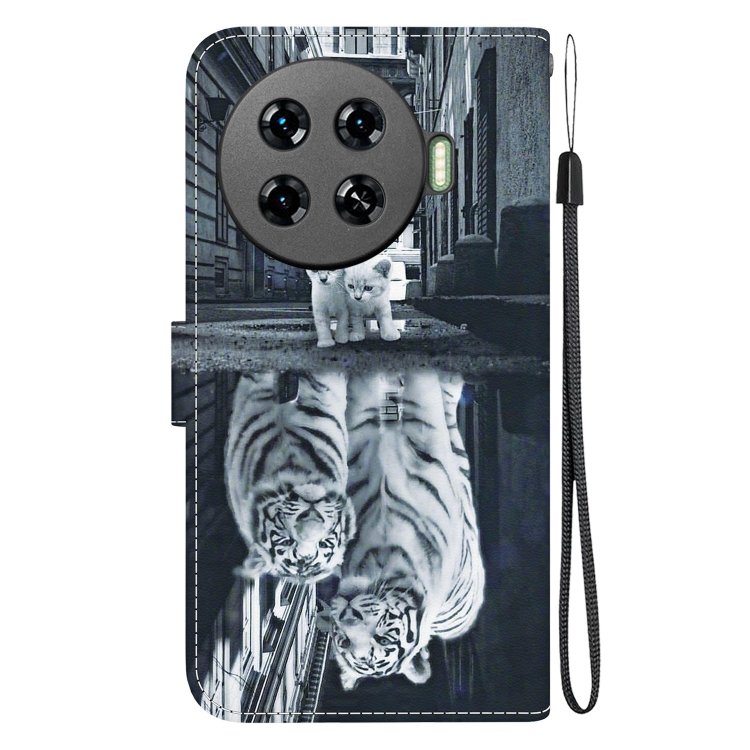 - 1x Funda de Cuero para Tecno Spark 20 Pro+ 4G con Dibujo Coloreado y Textura de Cristal (Reflejo de Tigre Gato)