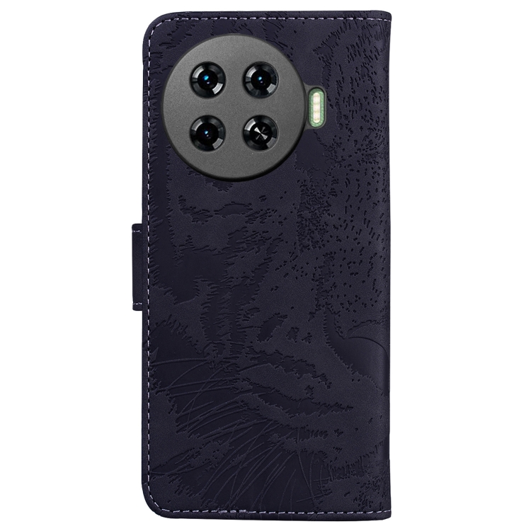 Funda de Cuero con Tapa para Tecno Spark 20 Pro + 4G con Patrón Tiger (Negro)