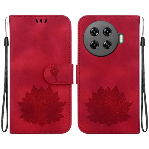 Funda de Cuero para Tecno Spark 20 Pro con Relieve de Loto (Rojo)