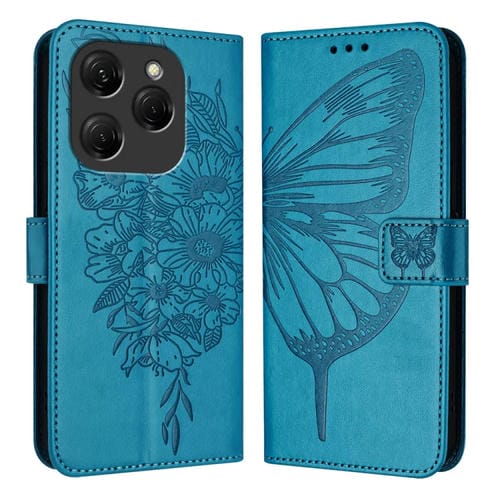 Funda de Cuero para Tecno Spark 20 Pro con Mariposa en Relieve (Azul)