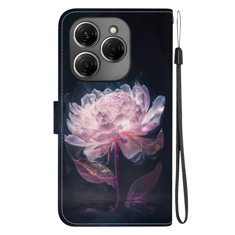 Funda de Cuero para Tecno Spark 20 Pro con Dibujo Coloreado y Textura de Cristal (Peonía Púrpura)