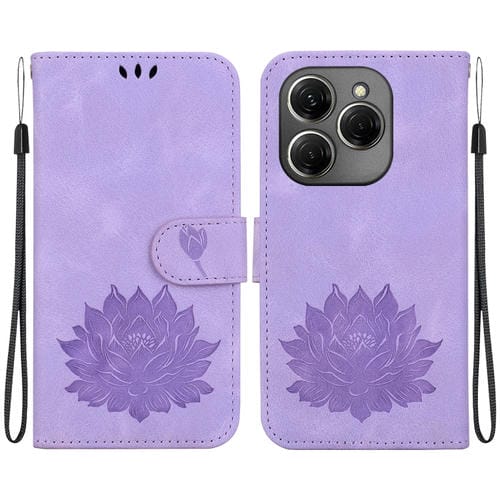 Funda de Cuero En Relieve para Tecno Spark 20 Pro Lotus (Púrpura)