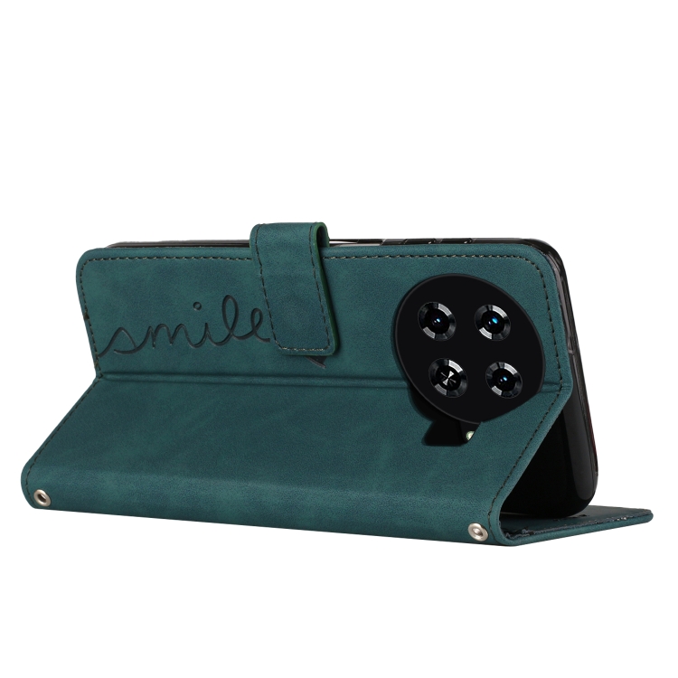 Funda para Tecno Spark 20 Pro Skin Feel Heart de Cuero en Relieve con Cordón Largo (Verde)
