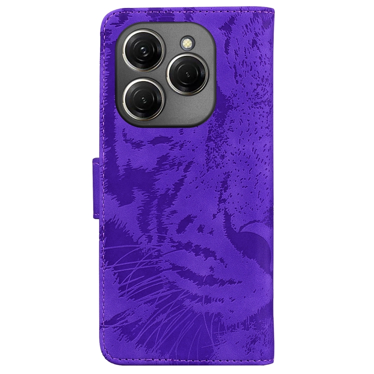 - 1x Funda de Cuero con Tapa para Tecno Spark 20 Pro Tiger Estampado en Relieve (Púrpura)