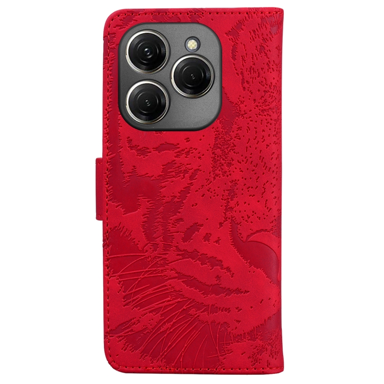 Funda de Cuero para Tecno Spark 20 Pro con Tapa y Patrón Tiger en Relieve (Rojo)