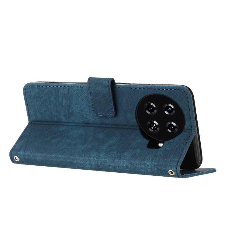 Funda de Cuero para Tecno Spark 20+ Skin Feel con Patrón de Rayas y Cordón Largo (Azul)