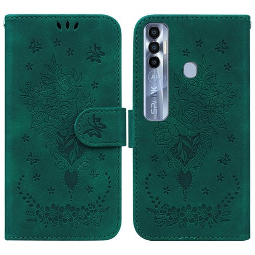 Funda para Tecno Spark 7 Pro Butterfly Rose Foothip en Relieve de Cuero (Verde)
