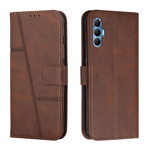Funda de cuero con hebilla para Tecno Spark 8 Pro Stitching Toce Texture (Marrón)