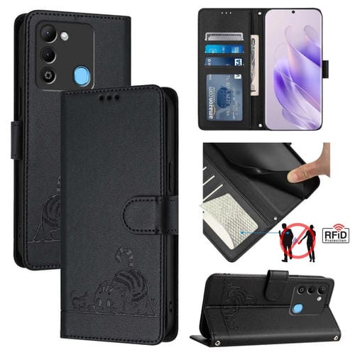 Funda para Tecno Spark 9 de Cuero RFID con Patrón en Relieve y Cordón (Negro)