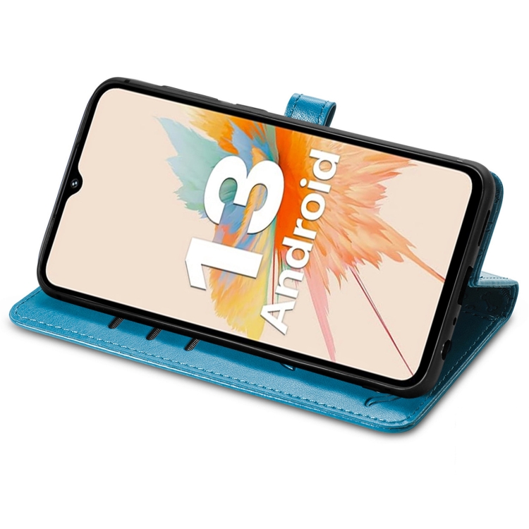 Funda para Umidigi A11 de Cuero con Relieve de Perro y Gato (Azul)