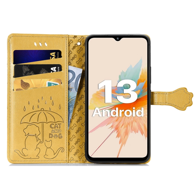 Funda de Cuero Umidigi A13 Pro 5G con Relieve Perros y Gatos (Amarillo)
