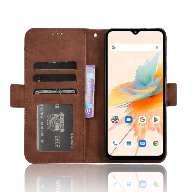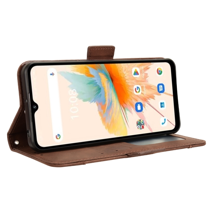 Funda de Cuero para Umidigi A15 y A15C con Ranuras para Tarjetas y Textura Becerro (Marrón)