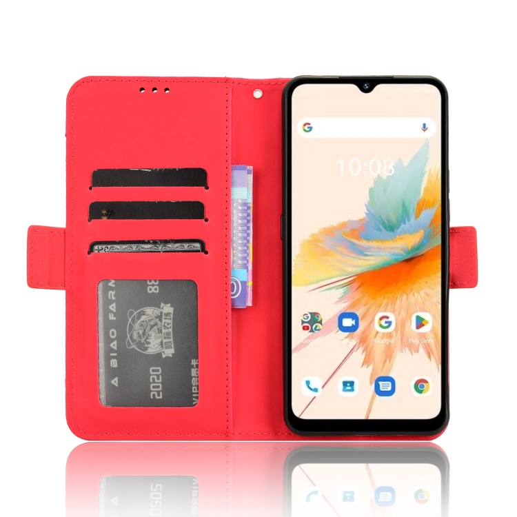 Funda de Cuero Umidigi A15 A15C Skin Feel con Ranuras para Tarjetas (Rojo)