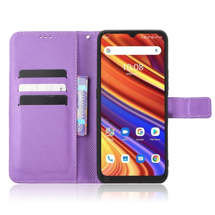 Funda de Cuero para Umidigi F3 5G 4G F3S F3 Se con Textura de Diamante (Púrpura)