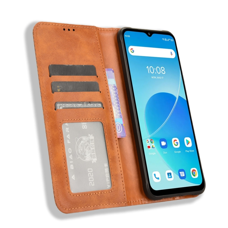 Funda para Umidigi G5 con Hebilla Magnética y Textura Retro de Cuero (Marrón)