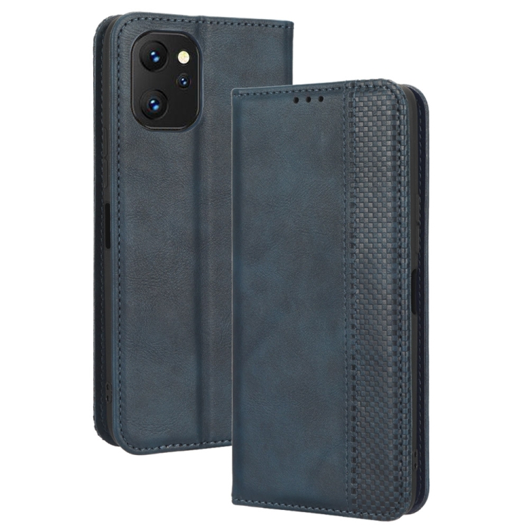 Funda de Cuero para Umidigi Power 7 y Power 7S con Hebilla Magnética y Textura Retro (Azul)