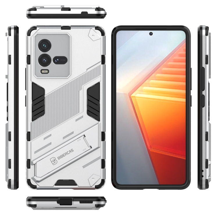 Para Vivo Iqoo 10 PC + TPU Estuche a Prueba de Golpes con Soporte Invisible (Blanco)
