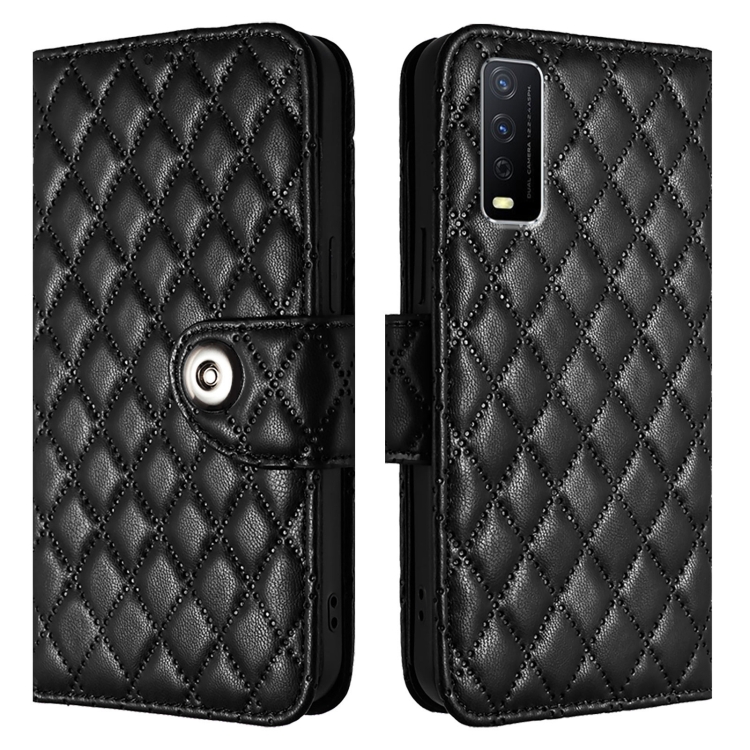 Para Vivo Iqoo U1X / Y11S / Y12S / Y12A Funda para Teléfono con Tapa de Cuero con Textura Rómbica y Cordón (Negro)