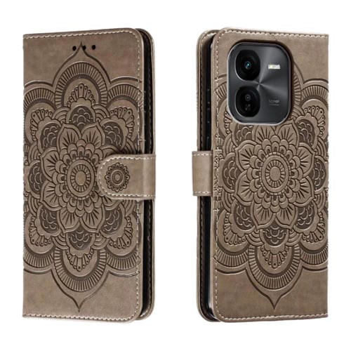 Para Vivo Iqoo Z9X Sun Mandala Funda de Cuero para Teléfono con Patrón En Relieve (Gris)