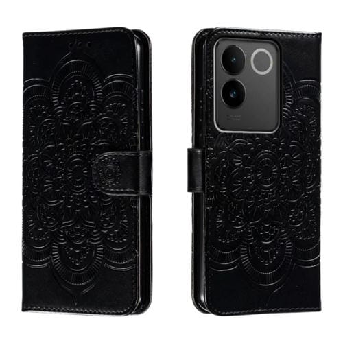 Para Vivo S17E Sun Mandala Funda de Cuero para Teléfono con Patrón En Relieve (Negro)