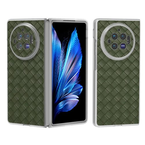 Para Vivo X Fold3 Funda para Teléfono de Pu con Marco Translúcido Esmerilado con Textura Tejida (Verde)
