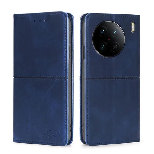 Para Vivo X90 Pro 5G Funda de Cuero con Tapa Horizontal Magnética con Textura de Vaca (Azul)