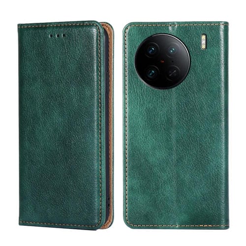 Para Vivo X90 Pro + Estuche de Teléfono de Cuero Magnético de Color Sólido de Aceite Brillante (Verde)
