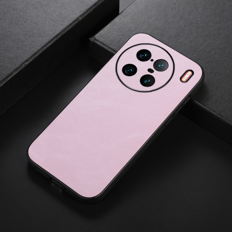 Para Vivo X90 Pro + Funda de Teléfono Pu con Textura de Piel de Vaca (Rosa)