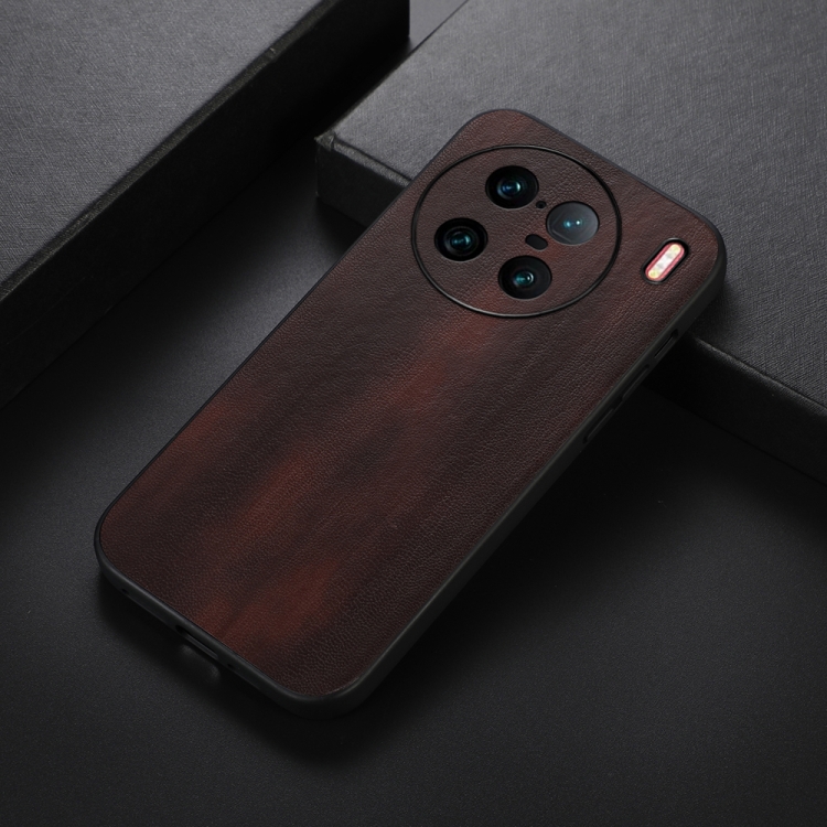Para Vivo X90 Pro + Funda de Teléfono Pu con Textura de Vaca Amarilla (Café)