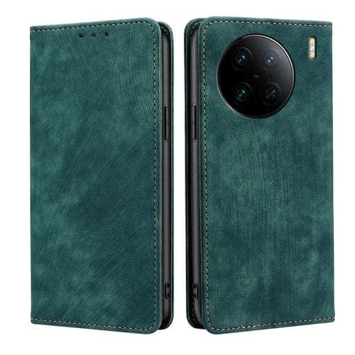 Para Vivo X90 Pro + Rfid Funda de Teléfono de Cuero Magnético con Cepillo Antirrobo (Verde)