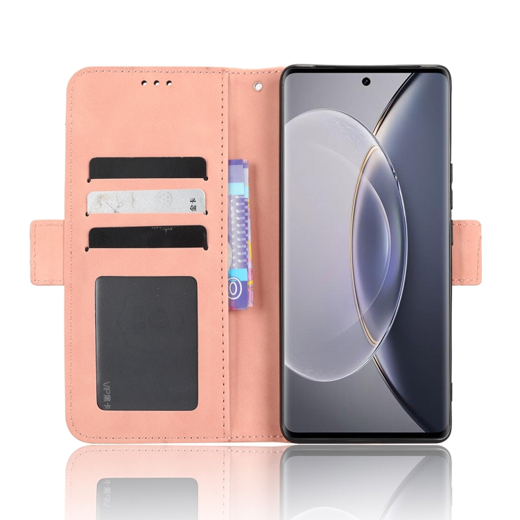 Para Vivo X90 Pro + Skin Feel Becerro Textura Ranuras para Tarjetas Funda de Cuero para Teléfono (Rosa)
