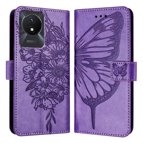Para Vivo Y02 / Y02A / Y02T / Y11 2023 Funda para Teléfono de Cuero con Mariposa En Relieve (Púrpura Claro)