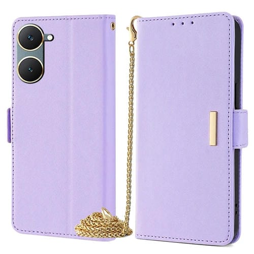 Para Vivo Y03 4G Funda de Cuero para Teléfono con Cadena Cruzada (Púrpura)