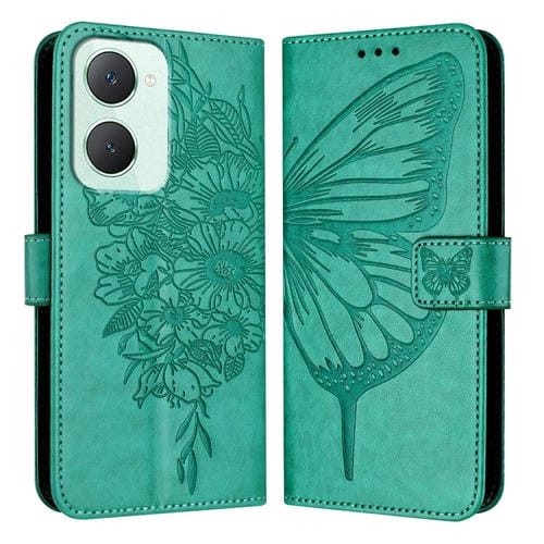 Para Vivo Y03 4G Funda para Teléfono de Cuero con Mariposa En Relieve Global (Verde)