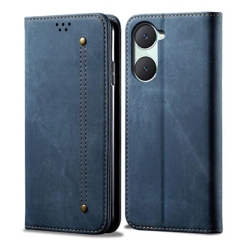 Para Vivo Y03 4G Funda para Teléfono de Cuero con Tapa con Textura Vaquera (Azul)