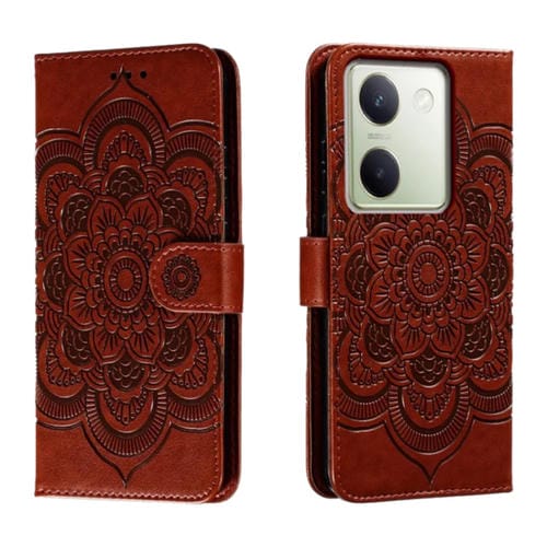 Para Vivo Y100 5G Sun Mandala Funda de Cuero para Teléfono con Patrón En Relieve (Marrón)