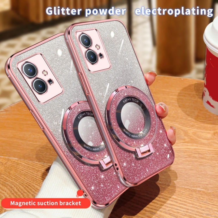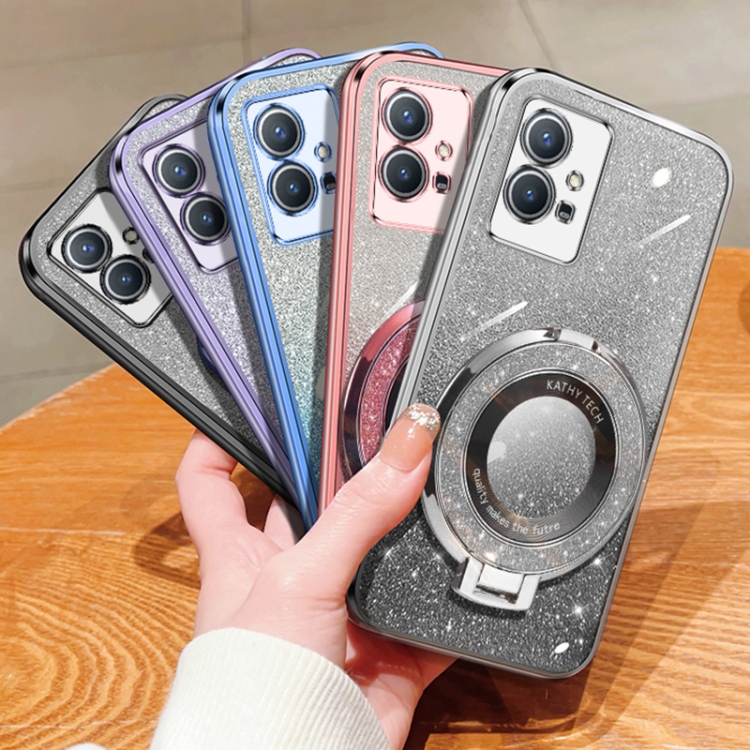 Para Vivo Y33S 5G / Y75 Estuche para Teléfono de TPU con Soporte Redondo y Brillo Degradado Plateado (Plateado)