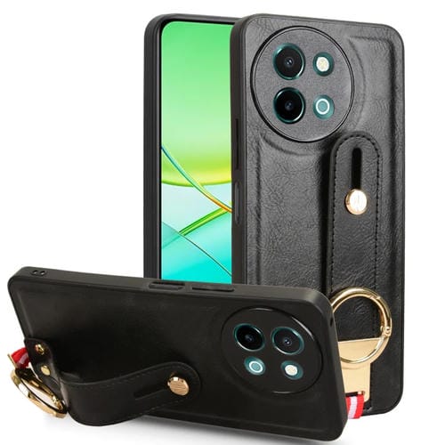 Para Vivo Y38 5G / Y200I 5G Funda Trasera de Cuero para Teléfono con Pulsera (Negro)