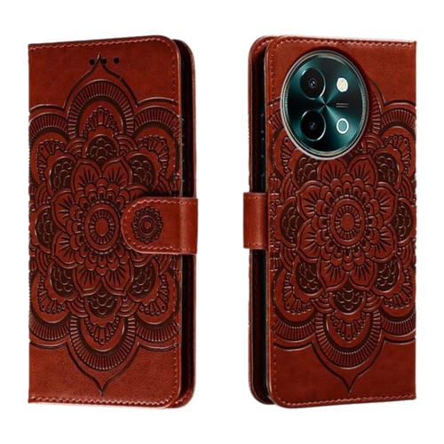 Para Vivo Y38 Sun Mandala Funda de Cuero para Teléfono con Patrón En Relieve (Marrón)