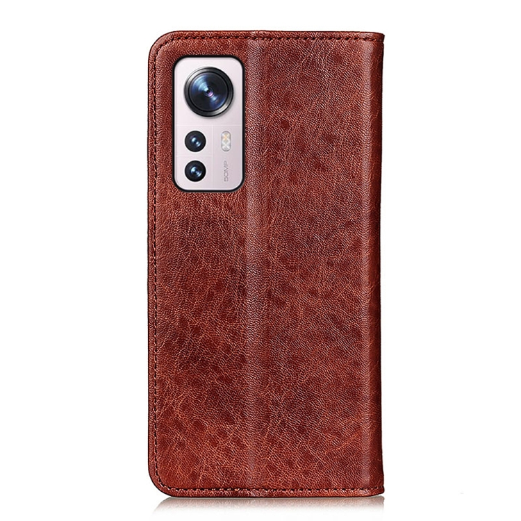 Para Xiaomi 12 / 12X / 12S Funda Magnética de Cuero con Textura de Caballo Loco (Marrón)