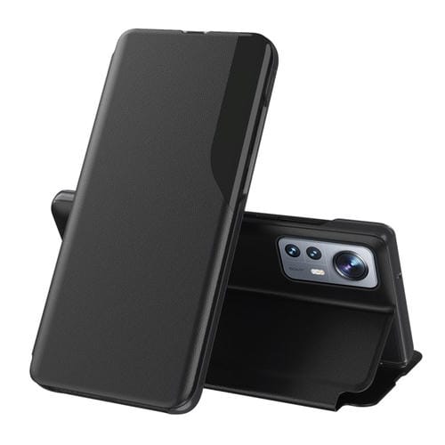 Para Xiaomi 12/12X Case de Teléfono de Cuero Flip de Pantalla Lateral con Soporte (Negro)