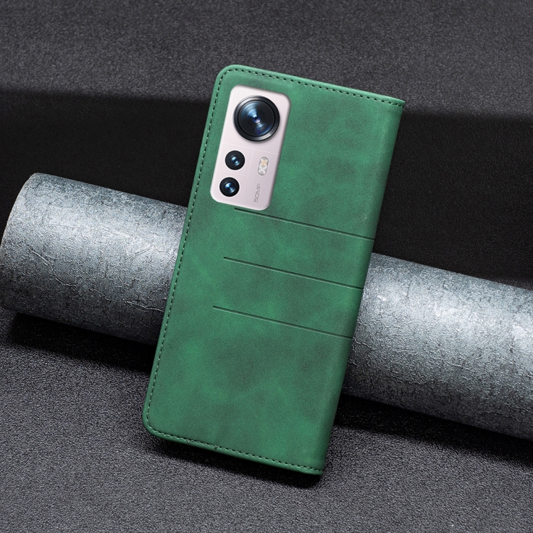 Para Xiaomi 12 Case de Teléfono de Cuero de Empalme Magnético (Verde)