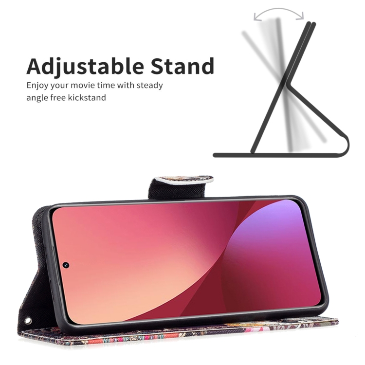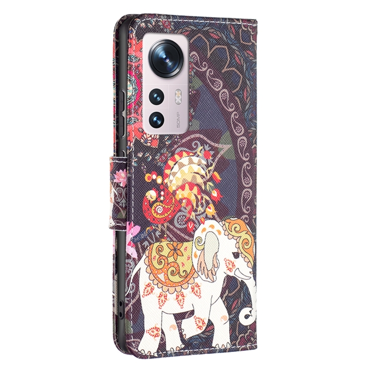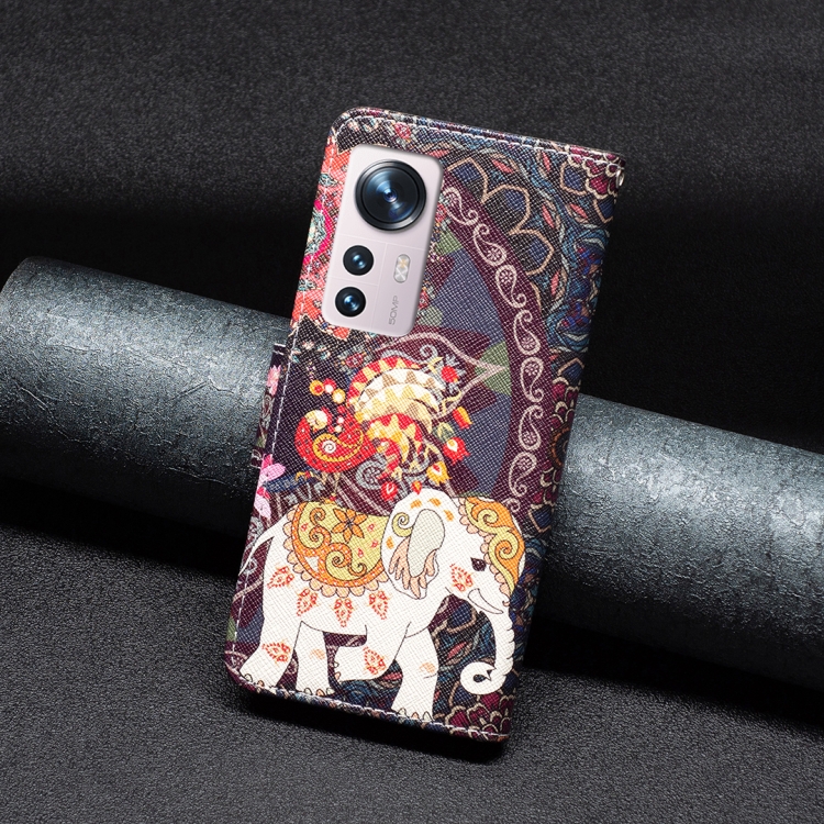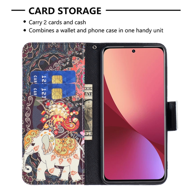 Para Xiaomi 12 Drawing Drawing Cuero Case (Flowers Elephant)